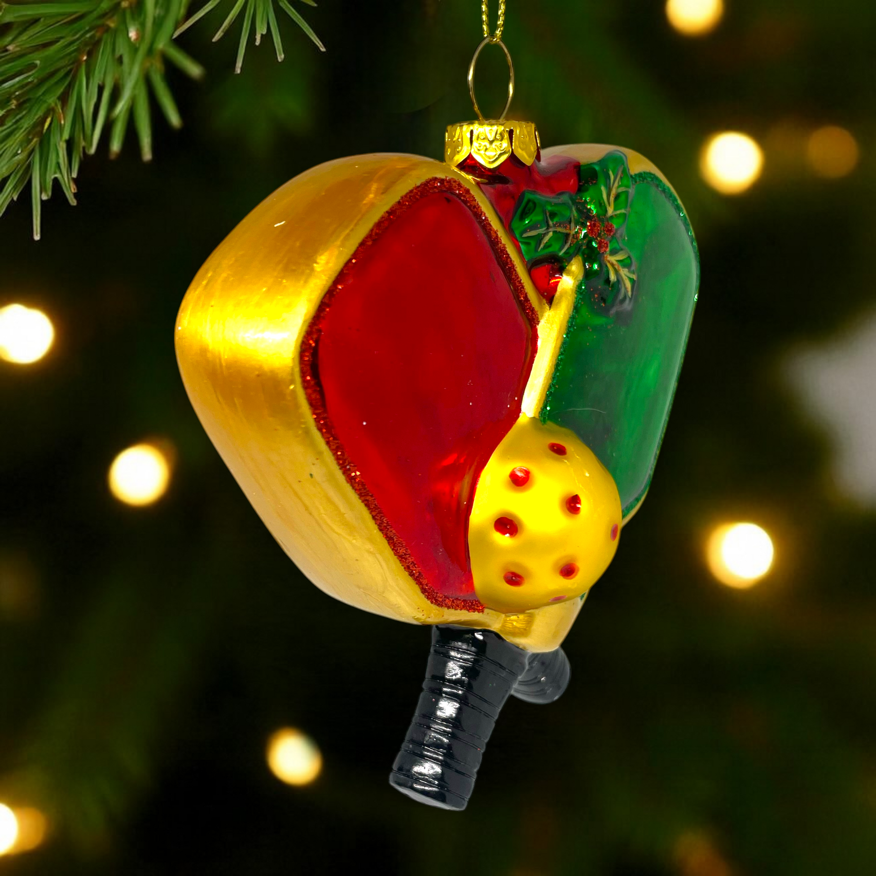 Celebrate your favorite doubles duo with this Personalized Pickleball Christmas Ornament — beautifully crafted from glass and hand-painted in festive red and green. Featuring two crossed paddles, a golden pickleball, and holly detail, this ornament makes a thoughtful keepsake for couples, teammates, and friends who love the game.
