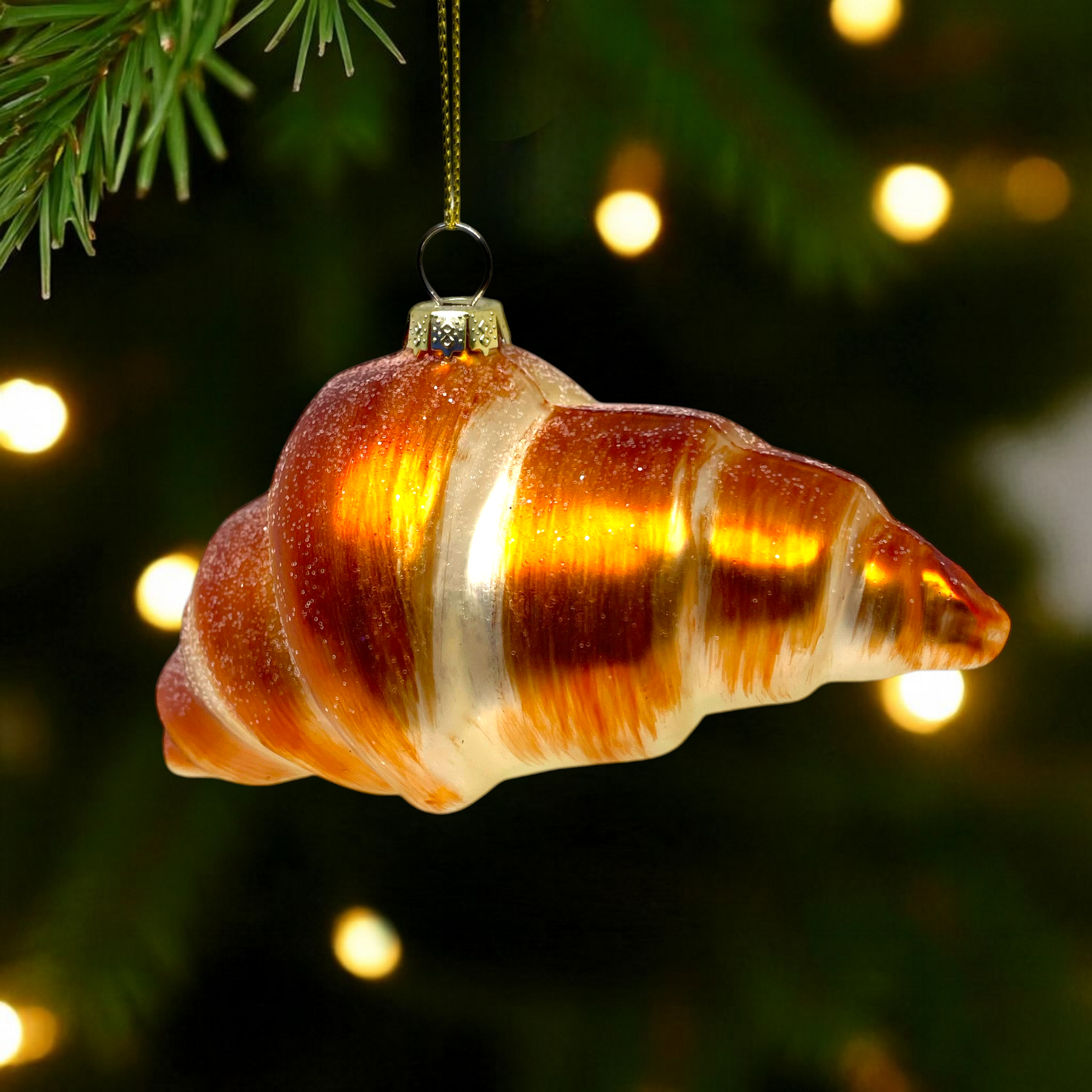 Bring the charm of a French bakery to your holiday celebrations with the Croissant Christmas Ornament. This mouthwatering ornament is crafted to resemble a golden, flaky croissant, complete with realistic texture and glittery accents to capture its buttery goodness. Perfect for food lovers, bakers, and Francophiles, this unique ornament adds a delicious twist to your Christmas tree. Personalize it with a name and year to make it a cherished keepsake.